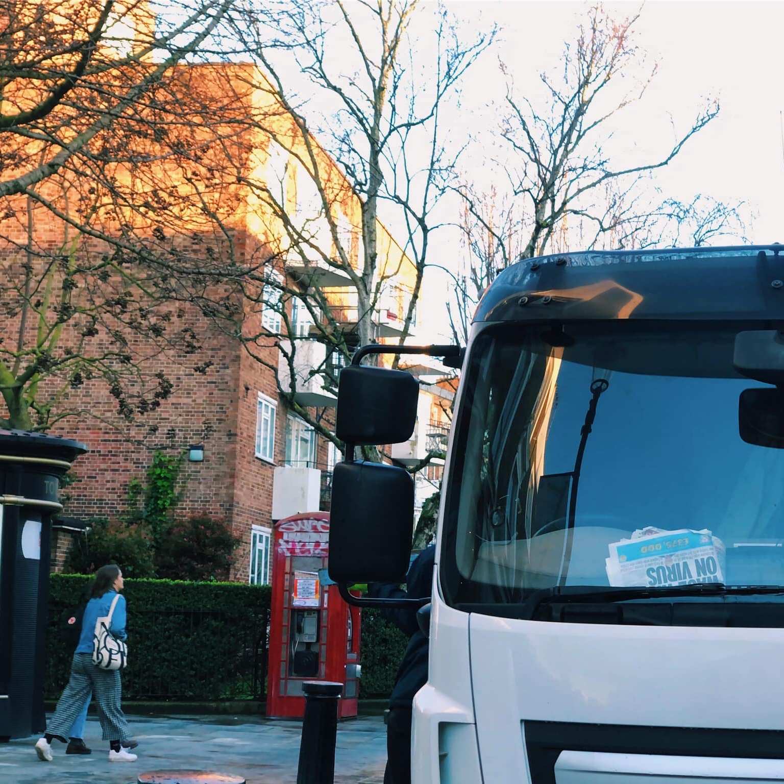 The newspaper in the bus window felt like another foreshadowing of the virus, eerie to look back on.